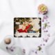 Peace, Love & Joy. Elegant Retro Stamped Floral Frame, Holiday foil photo card. Features, template space for your personal holiday message on back.