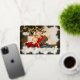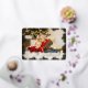 Merry Christmas. Elegant Retro Stamped Floral Frame, Holiday foil photo card. Features, template space for your personal holiday message on back.