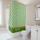This charming shower curtain features a delightful holiday motif that instantly brings the festive spirit to your bathroom decor. Vibrant triangular Christmas trees, adorned with round red ornaments, dance merrily across a soothing pale green backdrop. At the curtain's bottom, a tastefully designed green colour block with a striking red border awaits your personal touch – whether it's embellished with a name, a cherished holiday phrase, or left elegantly blank, this shower curtain adds a touch of seasonal magic to your daily routine. It's the perfect way to infuse your bathroom with the warmth and joy of the holiday season.
