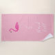 This fun pink beach towel is decorated with a pretty pink flamingo on a pink background accented with the cute saying, stand tall, making it the perfect accessory for the beach.