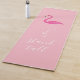 A cute pink flamingo and decorative type that says stand tall, decorates this yoga mat on a soft and soothing pink background, making it perfect for you next yoga class. The saying, stand tall, on this yoga mat can easily be personalised to say any you prefer. The back of this reversible mat is further decorated with more pink flamingos.