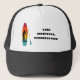 Add your own text to create a custom souvenir hat or personalised gift. This trucker's hat or baseball cap features an illustration of a SUP or stand up paddle board and paddle depicted in vibrant sunset colours with a silhouette illustration in black of someone paddle boarding. Beside the graphic is a spot to add your own message in bold black lettering.