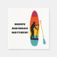 These personalised party napkins are perfect for paddle boarding themed birthday parties and other special events. They feature an illustration of a SUP or stand up paddle board and paddle depicted in vibrant sunset colours with a silhouette illustration in black of someone paddle boarding. Your message appears beside the graphic in bold black lettering.