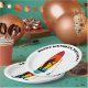 Add a personalised touch to birthday parties and other special events with these custom paper plates. They feature an illustration of a SUP or stand up paddle board and paddle depicted in vibrant sunset colours with a silhouette illustration in black of someone paddle boarding. Your own message is above the graphic in bold black lettering.