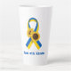 Show your support with this special latte mug featuring ribbon in the blue and yellow colours of Ukraine's flag with sunflowers, the national flower of Ukraine.
