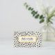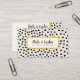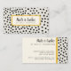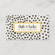 A Dalmatian print business card with black spots on a cream background and a pop of mustard yellow.