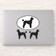Standard Poodle with Lamb Cut Haircut. Oval and die cut sticker set. These durable dog silhouette decals are waterproof and scratch resistant. Stick these black Standard Poodle vinyl stickers to your laptop, phone, notebook, water bottle, helmet, skateboard, or even your car. Visit Jenn’s Doodle World for even more dog breed vinyl decals and Poodle lover’s gifts.