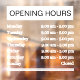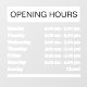 If you have just opened a shop and are looking for a way to indicate your opening hours, or if you are just looking to revamp the aesthetic of your window, we have just the opening hours sticker for you! Perfect shop window decor for all business owners out there as it can be customised with the hours of your choice to indicate exactly when you are open!