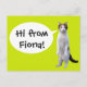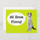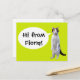 A bright lime green background and a funny cat standing on his hind legs makes for a fun postcard. Add your own custom text to the speech bubble to create your own personalised postcard that's perfect for cat lovers, veterinary offices and cat sitters.
