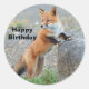 Standing Red Fox Birthday Classic Round Sticker
