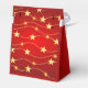 Simple and festive pattern of red and gold. Wavy lines with different shaped gold stars across a red gradient background. A cute design for the winter holiday time.
