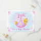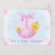 Our Star Baby shower invites are so pretty! They feature a baby in a pink blanket with lots of stars against a blue background with pink text that reads "It's a Baby Shower!".