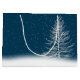 White star Christmas tree on blue with a glowing full moon, cute bunny and red cardinal.