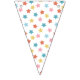 Playful bunting flags with 70s inspired coloured stars and solids for vibrant birthdays and retro-inspired party celebrations.