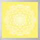 This white mandala sits on a calm yellow background. The colours are happy and peaceful. Part of the Gwias Mandala Collection.