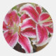 A beautiful image of Star Gazer Lilies on a round sticker.