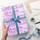 A geometric pattern composed of small star-shaped motifs in layered shades of lavender and purple on a soft pastel background.