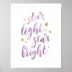 Star light star bright purple watercolor typography poster print features modern hand-lettered typography in purple watercolor and faux gold foil stars. Also comes in different colours. Look's great in a kids bedroom.