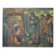 This design features a painting in watercolour by the British artist Sir Edward Burne-Jones, which depicts the traditional Nativity scene of the the Adoration of the Magi. An angel can be seen holding the star of Bethlehem as the Virgin Mary holds the baby Jesus in her arms and the Three Kings are bearing gifts. The work was completed in 1890, and it may be the largest watercolour work ever produced in the 19th century.