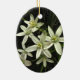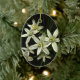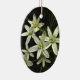 This fine art photography holiday ornament features the lovely spring perennial garden plant known as Star of Bethlehem (Ornithogalum umbellatum). Each flower has six white petals and a yellow centre. The flowers are set on a dark, almost black background.