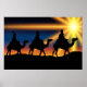 Star of Bethlehem, three wisemen on camels, scenic Christmas illustration.