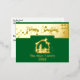 Personalised Real Foil Christmas Greeting Postcards. (Merry Christmas Blessings From Our Family To Yours...Jesus is the Reason for the Season.) Christmas Nativity Manger Scene | Star of Bethlehem. Luxury gold foil monogram design. Special handwritten-style message. Christmas Green background. Order Yours Today!