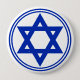 Round button with an image of a royal blue Star of David and royal blue double border on white. See the entire Hanukkah Buttons & Pins collection under the ACCESSORIES category in the HOLIDAYS section.