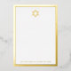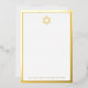 Elegant, vertical note cards featuring a simple Star of David at the top, and custom name or other text at the bottom. Along the edge is a solid border in silver, gold or rose gold foil on a white or custom colour background. Change fonts and colours with the design tool. Minimal and elegant stationery design.