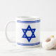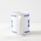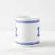 Classic white 11 oz. mug with an image, on both sides, of a royal blue Star of David and a top and bottom royal blue double border. See matching candy jar, Melamine plate, Porcelain plate, paper plate, square ceramic tile and coasters. See the entire Hanukkah Mug collection under the HOME category in the HOLIDAYS section.