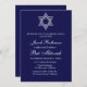 Elegant, modern, Star of David, minimalist, simple, boy, navy blue, elegant Bat Mitzvah invitation. You can personalise it with your details.