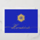 Simple and spectacular, this foil card has the Star of David superimposed over a solitary snowflake on the front with flowing “Hanukkah” in holiday script. The reverse has a greeting, and your signature. The background has more uniquely designed snowflakes, fading around the edges.