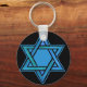 A keychain with a Star of David in blues and greens on a black background, from a handpainted design by Judy Adamson.