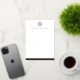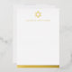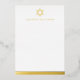 Flat, blank stationery notecards featuring a simple real foil Star of David with the name below in a masculine font. At the bottom is a real foil border. Choose between rose gold, gold and silver coloured foil.