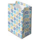 This fabulous gift bag would be perfect for any gift you are giving at Hanukkah. It's beautiful and modern design with multi-sized Stars of David in turquoise, blue and yellow is clean and simple, festive and fun! Get enough to wrap all your gifts.
