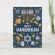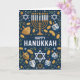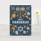 Celebrate the Festival of Lights with this beautifully detailed Happy Hanukkah card featuring a bold navy background adorned with Stars of David, gleaming menorah candles, dreidels, and golden gelt. The illustrated pattern design creates a festive and traditional feel—perfect for sending warm holiday blessings to family, friends, colleagues, or your community. A wonderful choice for anyone who appreciates classic Hanukkah symbolism and elegant seasonal artwork.