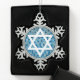 Decorate your Sukkah, or Chanukah space with this stylish genuine pewter ornament featuring the Star of David on a blue mosaic tile patterned background! Buy in bulk and attach an ornament to gifts for friends and loved ones.