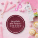 Star of David Pattern Bat Mitzvah paper plate features five star patterns aligned horizontally on a striped background, all within a white circular border. The title 'Bat Mitzvah' and the specific date are in pink. Available for bar mitzvahs as well. © Morning 6