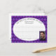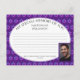Modern Star of David Share a Memory Photo card, including a CUSTOMIZABLE Photo and Christian Scripture verse. Used instead of a Condolences Book, guests can write down their special memory of the person who has passed. The design shows oval panel with MY SPECIAL MEMORY OF YOU in curved text, which is CUSTOMIZABLE, so you can add your own heading. You can also add a photo and name of the loved one on the front. Dotted lines are there to assist people when writing, and are continued overleaf. The design shows a colourful Star of David pattern against a rich PURPLE background. These cards can be given out at funerals to those in attendance, or included with invitations and returned by those unable to attend but who would still love to share a memory. Matching invitations available. Also comes in other designs by Berean Designs.