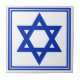 Square ceramic tile with an image of a deep blue Star of David and a double deep blue border on white. See matching candy jar, mug, Melamine plate, Porcelain plate, paper plate and coasters. See the entire Hanukkah Tile collection under the HOME category in the HOLIDAYS section.