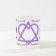 This frosted glass mug is delightfully different - feminine w/o being overly girlie, featuring Leslie Sigal Javorek's original digital design of a Star of David comprised of a plum coloured triangle and interlocking pearly periwinkle blue heart.