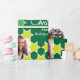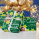 Fun bright Christmas family photos wrapping gift paper in shades of green and white. Customise with your own three special family photos, family name or message. Currently reads Merry Christmas from the Rodríguez Family. Uniquely designed by Sarah Trett.