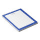 Star pattern on royal blue frame on white lined Notepad. Text can be personalised. Good for everyone! Aim for the stars!