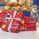 Fun bright Christmas family photos wrapping gift paper in shades of red, yellow and white. Customise with your own three special family photos, family name or message. Currently reads  Merry Christmas from the Rodríguez Family. Uniquely designed by Sarah Trett.
