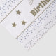 Decorative star print patterned tissue paper, the happy birthday text can be personalised to suit any special occasion, and the white background and stripe can be changed to any colour. all elements are removable.