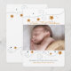 A star-studded holiday photo card with a white background, gold stars and dotted swirls. (<a href="https://www.freepik.com/free-photos-vectors/background">Background vector created by starline - www.freepik.com</a>). (<a href="https://www.freepik.com/free-photos-vectors/baby">Baby photo created by freepik - www.freepik.com</a>). <br/><br/>The card is easy to customise with your wording, font, font colour, paper shape options and choice of six paper types.<br/><br/>Not exactly what you're looking for? All our products can be custom designed to meet your needs at no extra charge.<br/><br/>Simply contact us at askcottonlamb@gmail.com.<br/><br/>Coordinating products available: Just ask us!"