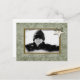 Insert your favourite photo into this holiday photo card. Design features pretty print sage green background, gold frame and star ornament with bow. (photo for illustrative purposes only)