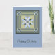 Old fashioned Birthday Greetings expressed on cards with traditional designs of patchwork quilt squares