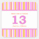 Star Shaped Personalised 13th Birthday Stickers: In pink, orange, and white stripes. Add the Birthday name.