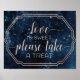 Navy Blue & Rose Gold Star Sky Celestial Galaxy Watercolor Wedding Love is Sweet Sign, With trendy brush script font! ~ Check my shop to see the entire wedding suite for this design!