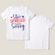 A lively and patriotic design featuring the phrase "Star Spangled and Sassy" in bold, dynamic text. The words "Star" and "Sassy" shine in blue, while "Spangled" and "and" pop in red, creating a striking contrast. Scattered red and blue stars enhance the festive, spirited vibe, making this design perfect for celebrations, apparel, or anyone looking to showcase their fun, confident patriotism.
